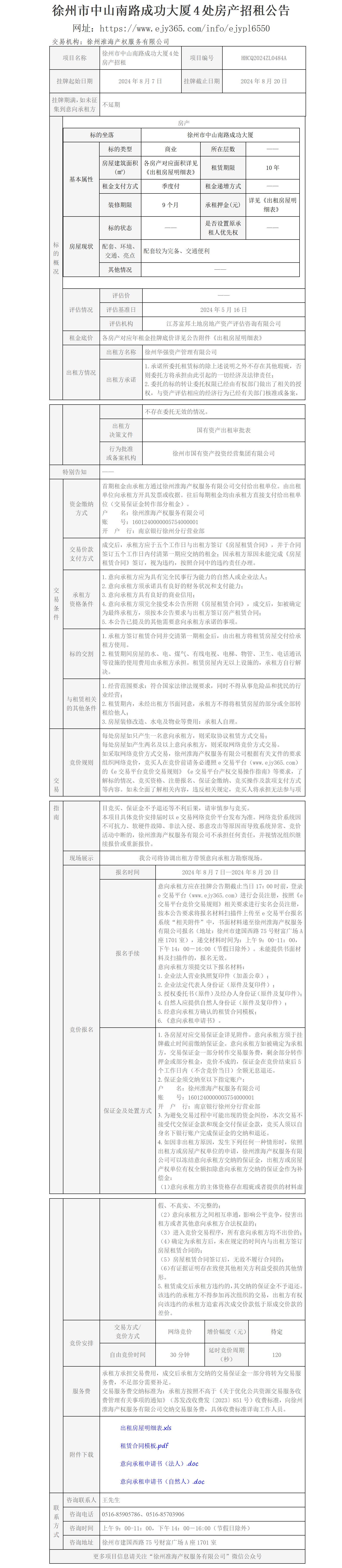 徐州市中山南路成功大廈4處房產(chǎn)招租公告
