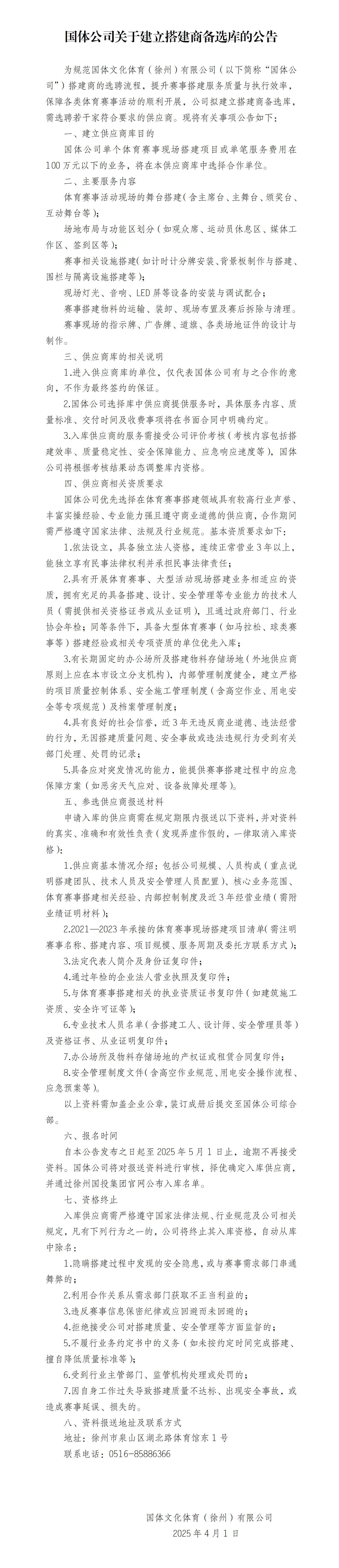 國體公司關(guān)于建立搭建商備選庫的公告